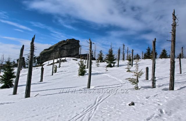 České hory » Jizerské hory » Foto: Čertův kámen je název pro skalisko nalézající se v nadmořské výšce 1025 m na vrcholku Černého vrchu na začátku Vlašského hřebene Jizerských horách.