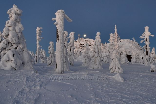 České hory » Jizerské hory » Foto: 07.02.2015 - Jizera 1122m druhá nejvyšší hora JH při svitu měsíce.