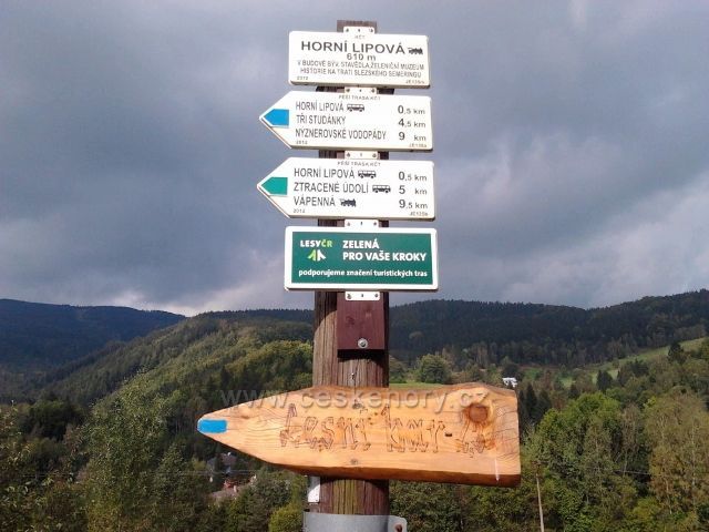 Předchozí foto Horní Lipová - turistický rozcestník před železniční stanicí