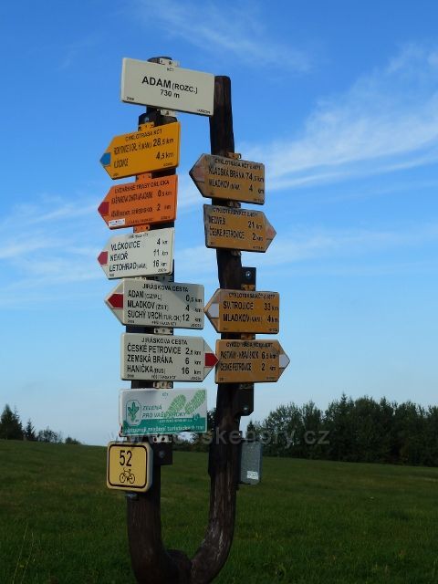 Petrovičky - rozcestník na Adamu u odbočky ke Kašparově chatě /730 m.n.m./