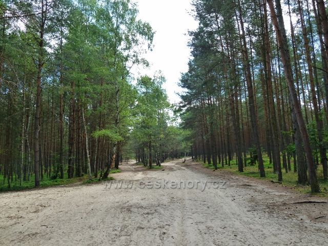 Široká lesní písčitá cesta z Bezdězu do Doks