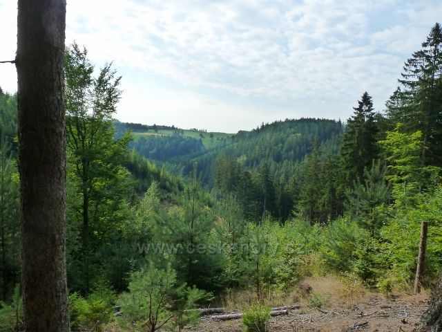 Hradiska - pohled z trasy do Orliček po červené TZ k silnici na Suchý vrch