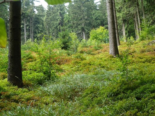 Foto: Buková hora - podrost borůvky v lesním porostu u cyklostezky 4071 do Mlýnického Dvora