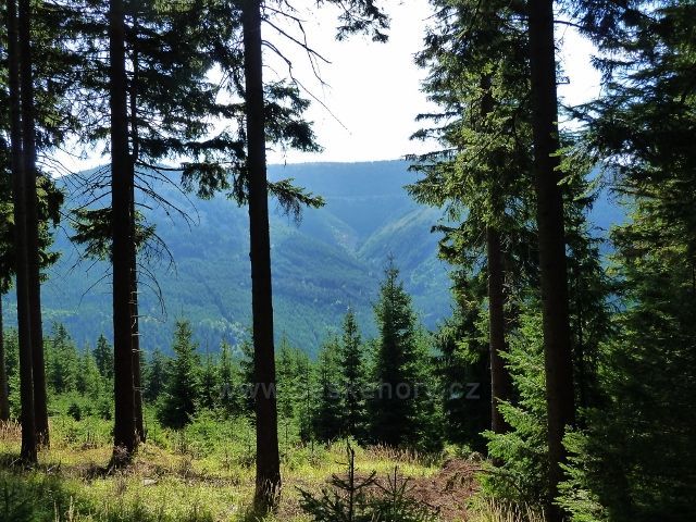 Dolní Morava - průhled do protilehlého údolí potoka Poniklá z rozcestí nad Zbojnickou chatou