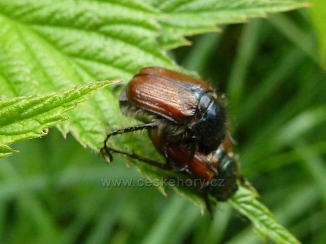 Hamernice - brouci listokaze zahradního na listech ostružinovníku u lesní stezky