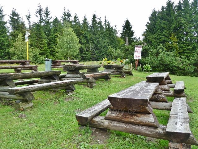 České hory»Beskydy»Foto: Nýdek - místo posezení po náročném výstupu k horské chatě Čantoryji nás vítají četné zákazové cedule na objektu chaty i v jeho okolí