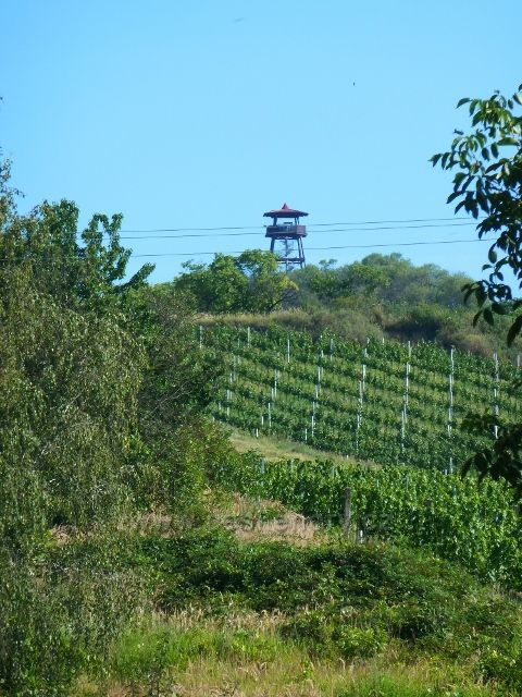 Foto: Hustopeče - pohled na Mandloňovou rozhlednu od hřbitova