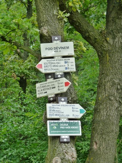Pálava - turistický rozcestník Pod Děvínem
