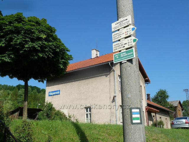 Foto: Vápenná - turistický rozcestník u nádraží ČD
