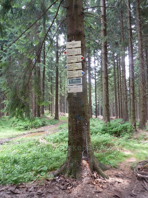 Foto: Turistický rozcestník "Kostelky, 930 m.n.m."