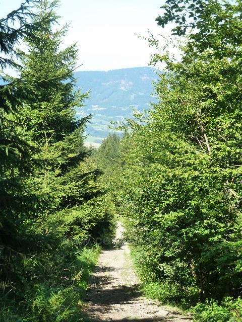 České hory » Beskydy » Foto: Cesta po zelené TZ od rozcestí Pod Lukšincem před Albínovo náměstím prudce klesá