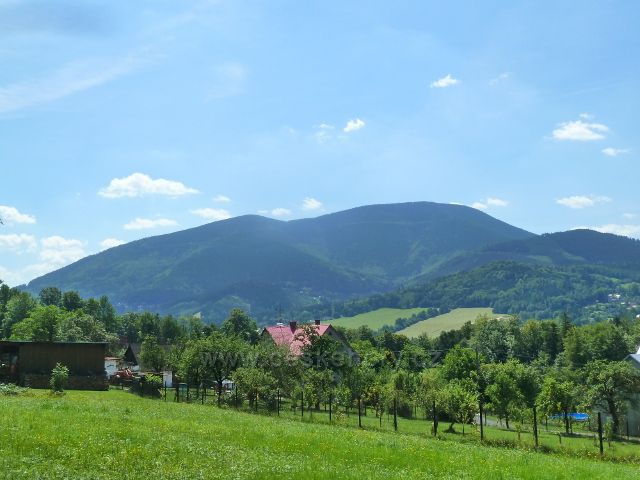Ostravice- pohled z místní části Hamrovice na masiv Smrku