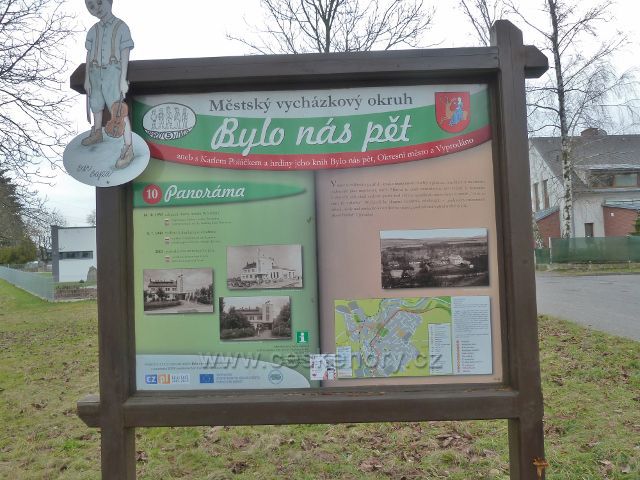Rychnov nad Kněžnou - tabule 10. zastavení Městského vycházkového okruhu Bylo nás pět v parčíku před hotelem Panoráma - Panoráma