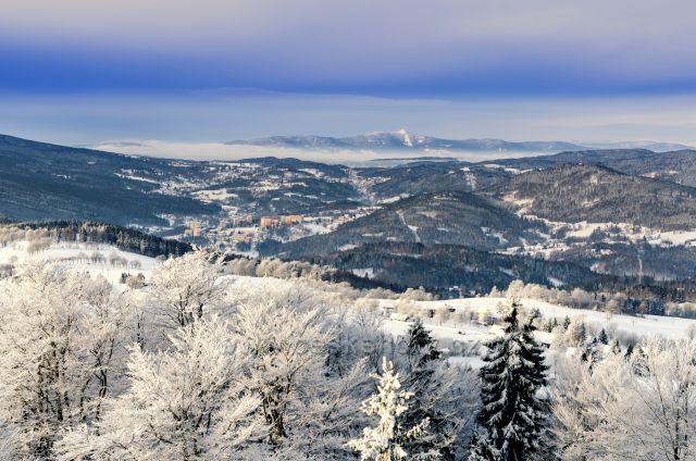 České hory » Jizerské hory » Foto: Výhled ze Štěpánky(rozhledna) na Tanvald a Ještěd.
