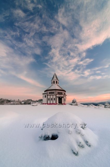 České hory » Jizerské hory » Foto: Východ v Tesařově - kostelík na místním hřbitově.