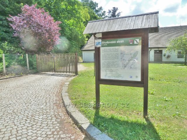 Bludov - tabule NS Bludovská stráň č.1 "U Zámku" stojí před bývalou zámeckou oranžerií
