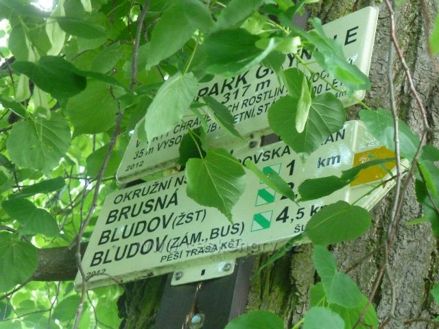 Bludov - turistický rozcestník "Lesopark Gryngle, 317 m.n.m."