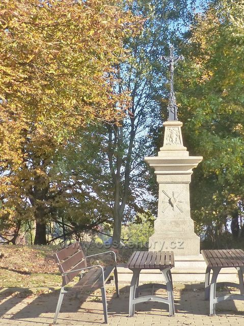 Petrovičky - restaurovaný kříž Josefa Zuigeeho na parkovišti u hraničního přechodu do Polska