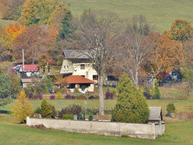 Vlčkovice - pohled z úpatí Studeného na hřbitůvek v horní části obce