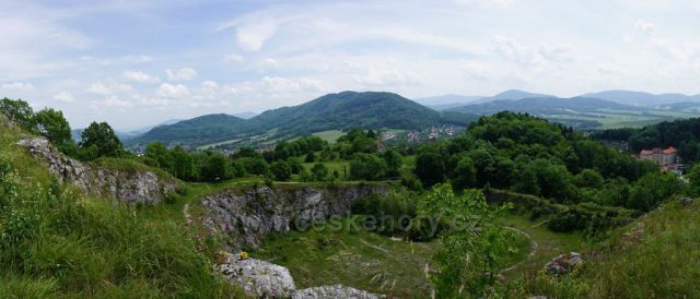 Foto: Pohled z Kamenárky ve Štramberku.vlevo Kopřivnice,Červený kámen,vpozadí Lysá hora,vpravo v pozadí Radhoštˇ,Javorník