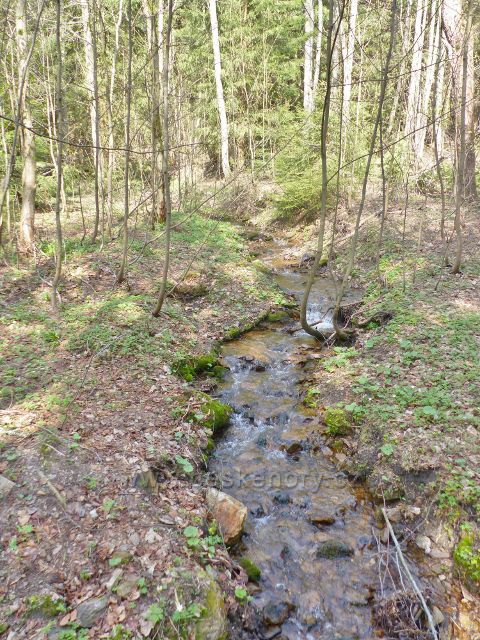Pravostranný přítok potoka Hadinec protéká napříč PR Černý důl