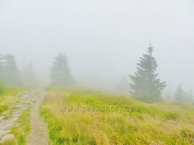 Foto: Horní Malá Úpa - hřebenová stezka k vrcholu Tabule v zajetí mlhy