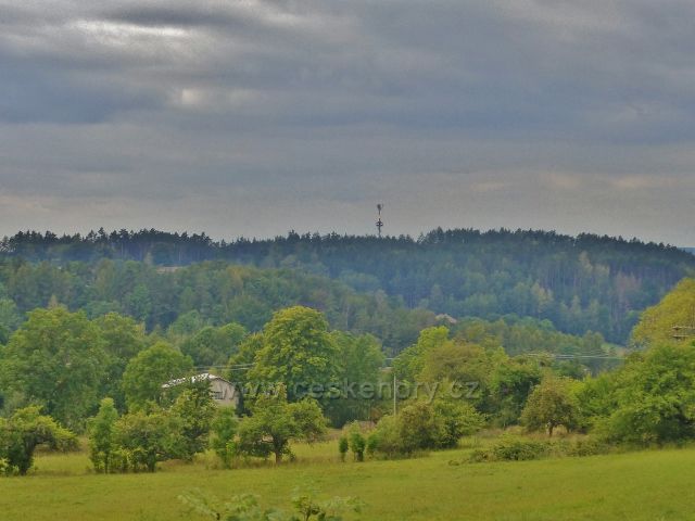 Pohled z obce Loktuše k rozhledně Dubecko