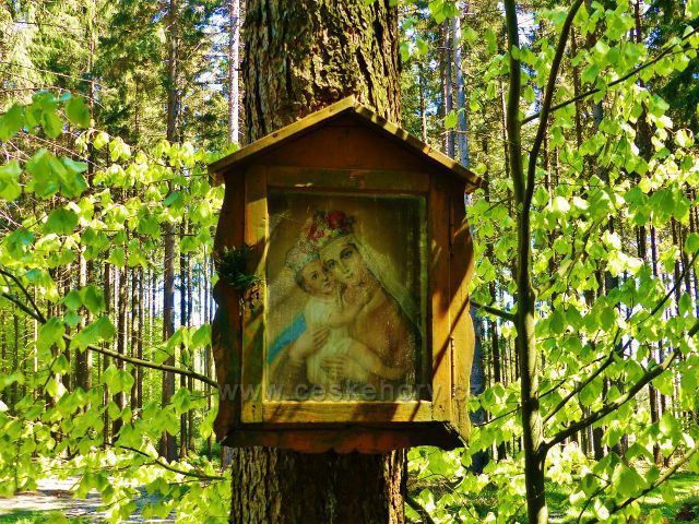 Foto: Svatý obrázek na křižovatce cesty Dr. Jarkovského na Žampach s neznačenou cestou k hájovně v Křižánkách