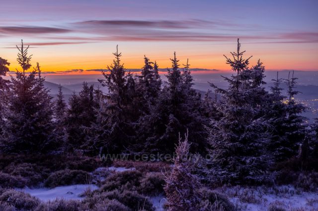 Zimní západ slunce na obzoru z Kněhyně