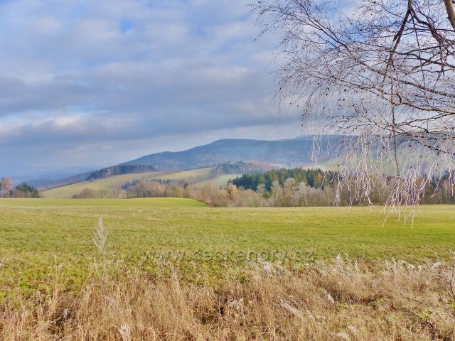 Vlčkovice - pohled z úbočí Kostelního vrchu na Vysoký kámen(843 m.n.m.) v masivu Suchého vrchu