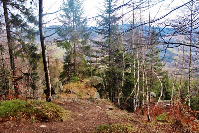 Foto: Studenecké skály tvoří skalní hradbu pod vrcholem Studeného (721 m.n.m.)