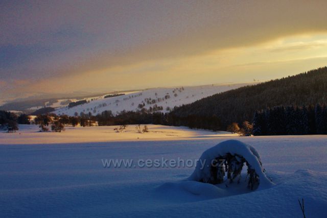 Bartošovice v O.h. - Vysoký Kořen, podvečerní pohled z rozhledového místa