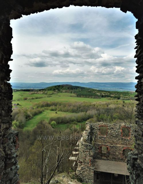 Foto: Průhled oknem ze zříceniny hradu Andělská hora