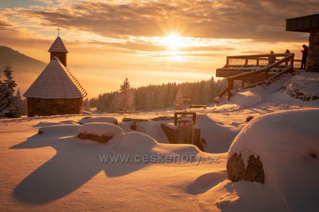 České hory » Krkonoše » Foto: Západ slunce na Erlebachově boudě.