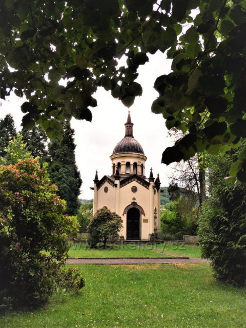 Kaple v České Kamenici - orámována stromy