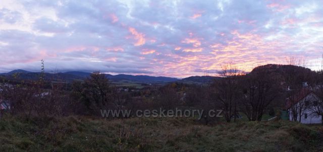 Foto: červánky nad Beskydama.vlevo Javorník