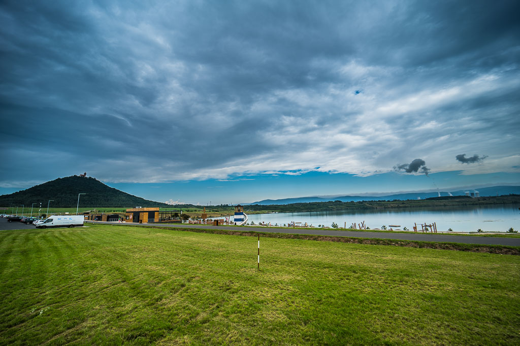 Jezero se nachází v místech starého města Mostu, které muselo ustoupit těžbě uhlí a bylo zbouráno. V docházkové vzdálenosti se nachází přesunutý děkanský kostel, který byl po kolejnicích přesunut, aby nebyl zbourán.