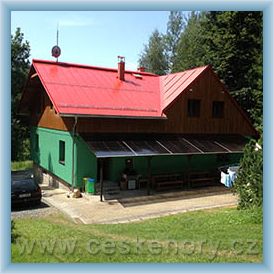 Chata je pronajímána jako celek pouze na víkend nebo týden. Celková ubytovací kapacita pro 20 osob. vytápění objektu je zajištěno ÚT (plyn,dřevo) a krbovými kamny. Společná sauna pro 8 osob a stolní tenis v přízemí. V přízemí 1 pětilůžkový pokoj, společenská místnost, krbová kamna. WC 2x ženy a 2x muži, 2 sprchové kouty TV, video, DVD, UPC, Hi-fi. V podkroví 5... více >>