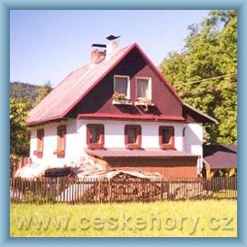 Rekreační domek volně stojící uprostřed obce a u horského potoka. V přízemí s obýv.pokojem s krbem, kuchyní, sam.WC, koupelnou, spížkou, v podkroví 2 ložnice každá se 4 lůžky. Mikrovlnka, peč.trouba, nádobí. Vlastní strava. Postele povlečené. Kryté stání pro auto, venkovní krb, ohniště, houpačky.