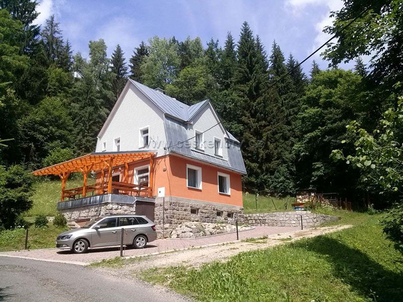 Pro 2 až 4 rodiny, max. 16 osob. Wifi, internet. Polosamota s překrásným okolím a horským potůčkem, terasa s posezením. V zimě ideální podmínky pro lyžování a běžky. Velký výběr sjezdovek do 1km od chaty. V létě koupaliště v obci, nádherné koupání v přehradě v Jablonci - 9km.
