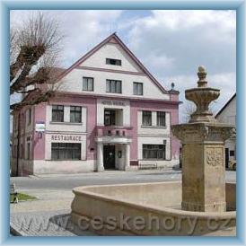 Hotel ***, pokoje a apartmány s vlastním příslušenstvím (sprcha,WC), šipky, kulečník, fotbálek, letní terasa. Stylová restaurace, výborná česká kuchyně. V obci služby kadeřníka, maséra. Exkurse do místního pivovaru a na hrad Pecka. Leták pro Silvestrovský pobyt zašleme mailem (noční prohlídka hradu Pecka, prohlídka Pivovaru, taneční vystoupení, rej masek, lyžování v Herlíkovicích, tombola a další)