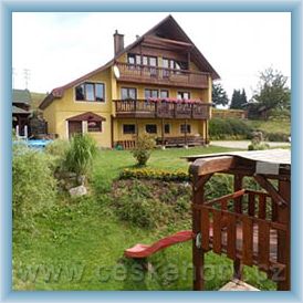 Rodinný penzion se čtyřmi pokoji s vlastním soc.zařízením, celkem pro 19 osob, 1km od čtyřsedačkové lanovky. Venkovní vyhřívaný bazén, altán s grilem, dětský koutek...