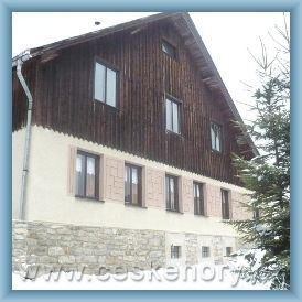 Chalupa u místní asfaltové komunikace v blízkosti lesa, ve výšce 750m.n.m., nabízí ubytování ve 2 apartmánech.